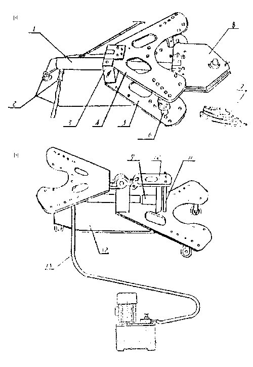 9、直角模頭 10、聯桿板 11、銷子 12、小車