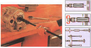 從軸承孔中插進拉拔器旋轉后部六角螺絲使拉拔器脹大