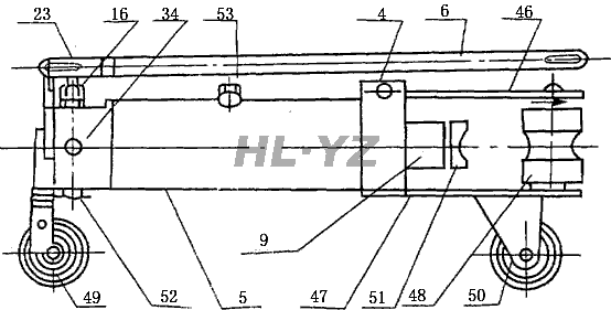 | 43 O形圈 | 44長螺栓 | 45堵頭 | 46上模板 | 47下模板 | 48支前輪 | 49前輪 |