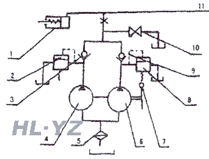 5-濾油器    6-低壓泵     7-壓桿      8-低壓安全閥