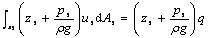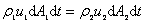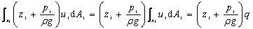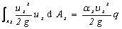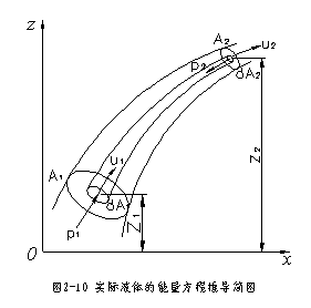 如圖2-10所示,通過(guò)微流束取一流管,截面為A1、A2,微流束兩端的截面為dA1、dA2,兩截面相應(yīng)的壓力、速度、離基準(zhǔn)面的位置分別為p1、u1、Z1和p2、u2、Z2。將方程兩邊在A1和A2面上進(jìn)行積分,得 ![]()
