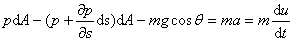 假設(shè)從理想液流中沿流束方向取出一段長(zhǎng)度為ds,面積為dA的微元體,如圖2-9,