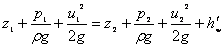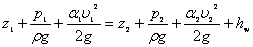 設(shè)hw代表總流在這流段上的單位重量液體的平均能量損失則有 ![]()