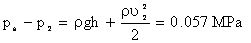 2)以1-1和2-2的中心為基準(zhǔn)列伯努利方程。由于Z1=Z2=0,所以