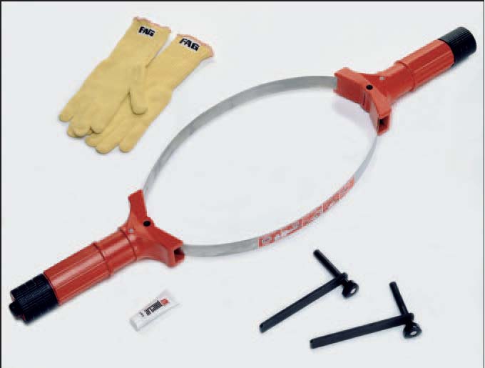 應加熱器加熱軸承時,搬運工具可以一直留在軸承上。鋼帶可以隨著軸承一起膨脹。這樣可以產生最佳的松緊度。有3種型號的搬運工具以適應不同大小的軸承。